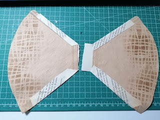 I rip edge of paper to have an irregular one, I mark shape of the filter, on a filter I cut right at the battom of the filter, and a centimeter larger on two oblique sides, on other filter almost the same but we need a couple of centimeter at the bottom of the filter, and we will use them to connect two filters together, you can see better in next photoes